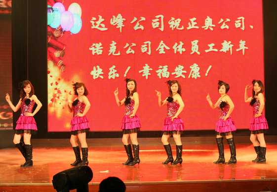 晚會在喜慶的歌伴舞《美麗的心情》中拉開帷幕,也拉開了2012年新的開始;一線工人《時尚秀表演》藝術(shù)化的再現(xiàn)工人快樂勞動過程,展現(xiàn)了公司青年職工的青春與活力;此次晚會還特別邀請了邁克爾杰克遜的模仿秀,恒通公司、達峰公司選送的精彩節(jié)目給觀眾帶來無窮的樂趣;由公司領(lǐng)導(dǎo)王榮華領(lǐng)銜表演的歌曲聯(lián)唱給大家留下了深刻的印象,博得陣陣喝彩;特別是公司總經(jīng)理喬虹演唱、職工伴舞的《今夜無眠》節(jié)目將晚會推向了高潮,讓大家仿佛置身于中央春節(jié)聯(lián)歡晚會之中,晚會抽獎節(jié)目再次把晚會氣氛推向高潮。